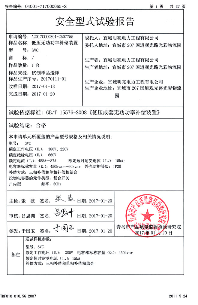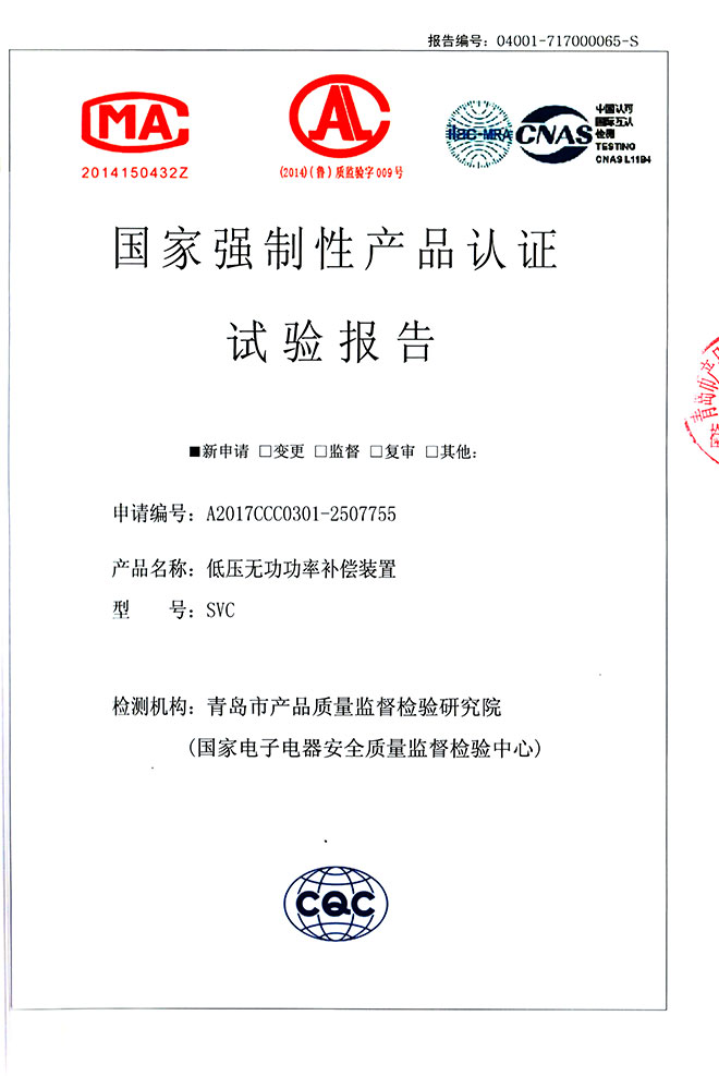 低压无功率补偿装置检验报告SVC检验报告