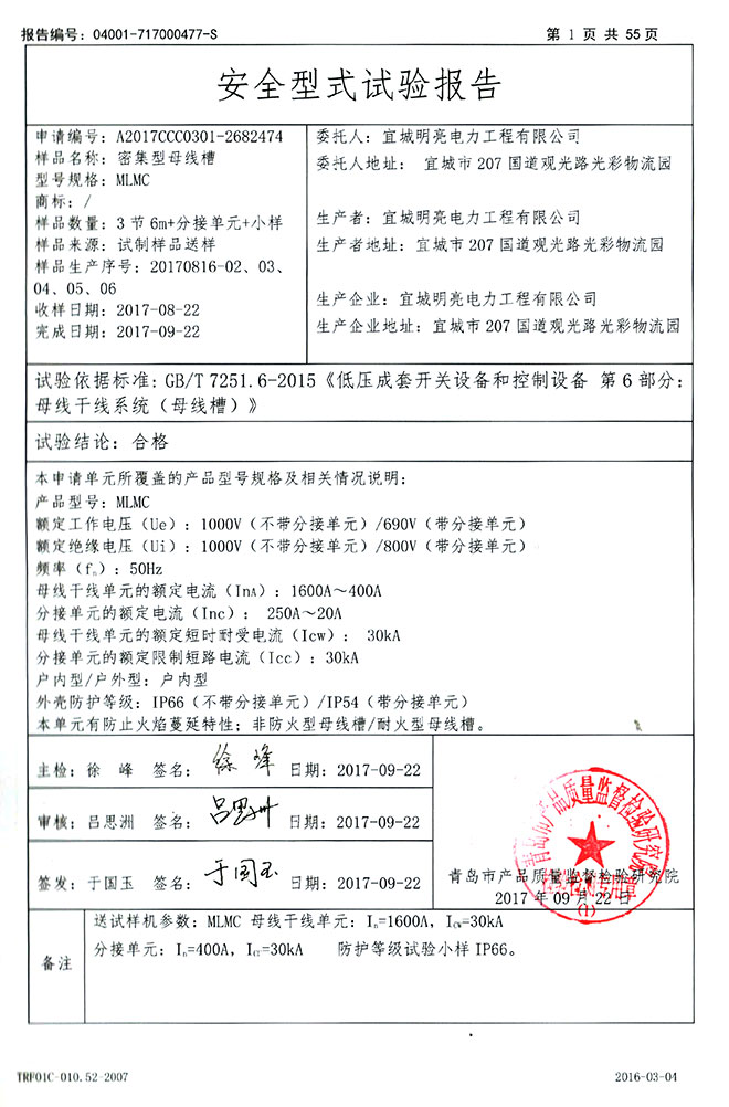 密集型母线槽MLMC检验报告