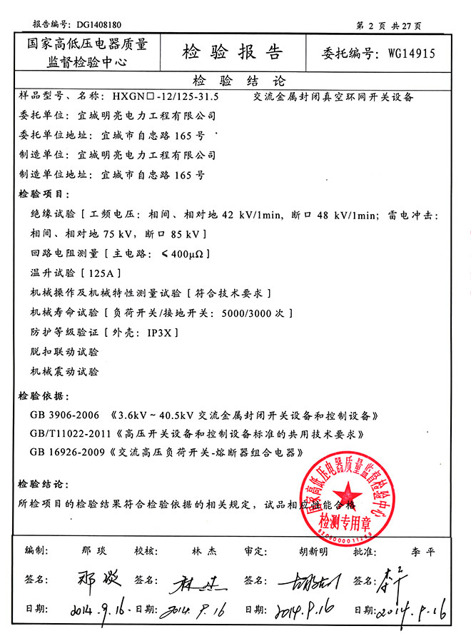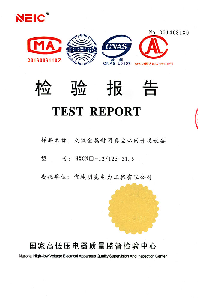 交流金属封闭真空环网开关设备(HXGN-12-125-31.5)检验报告