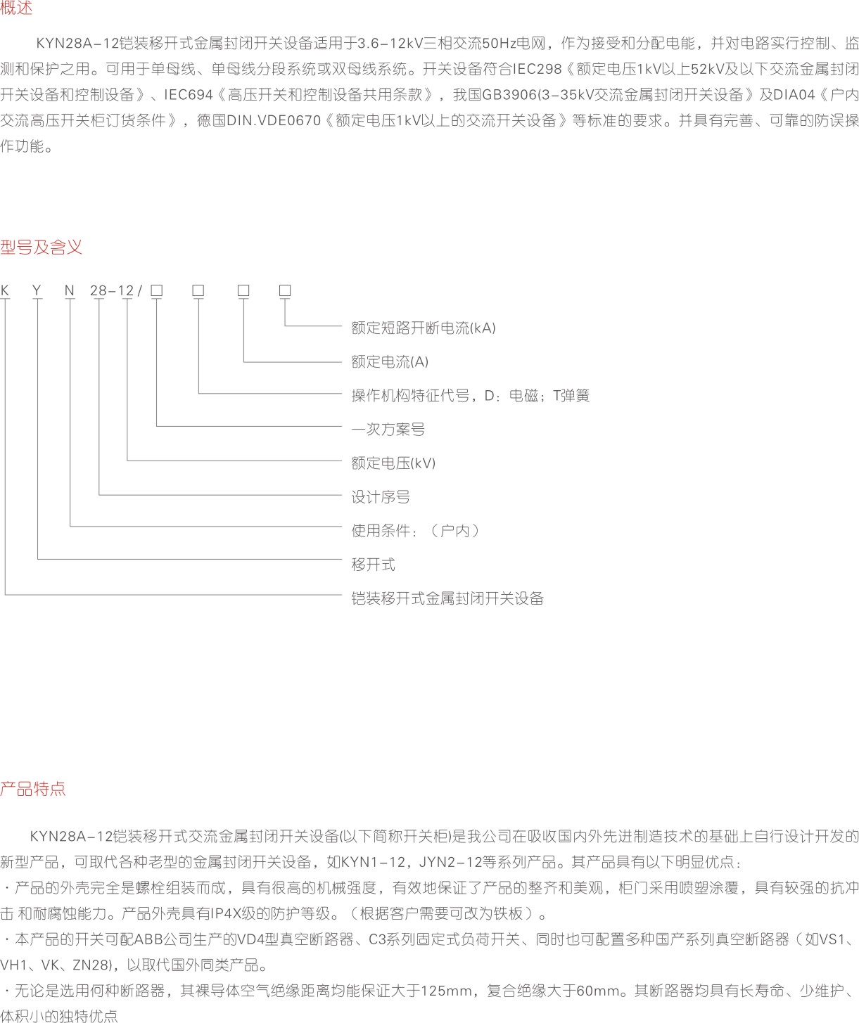 KYN28-12铠装移开式交流金属封闭开关设备
